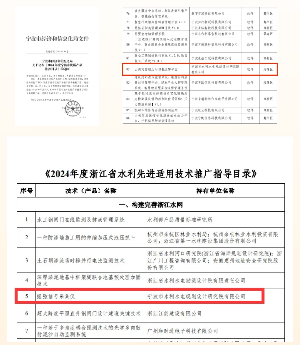喜報 | 我院三項成果先后入選《2024年度寧波市優(yōu)質(zhì)產(chǎn)品推薦目錄》《2024年度浙江省水利先進適用技術(shù)推廣指導(dǎo)目錄》