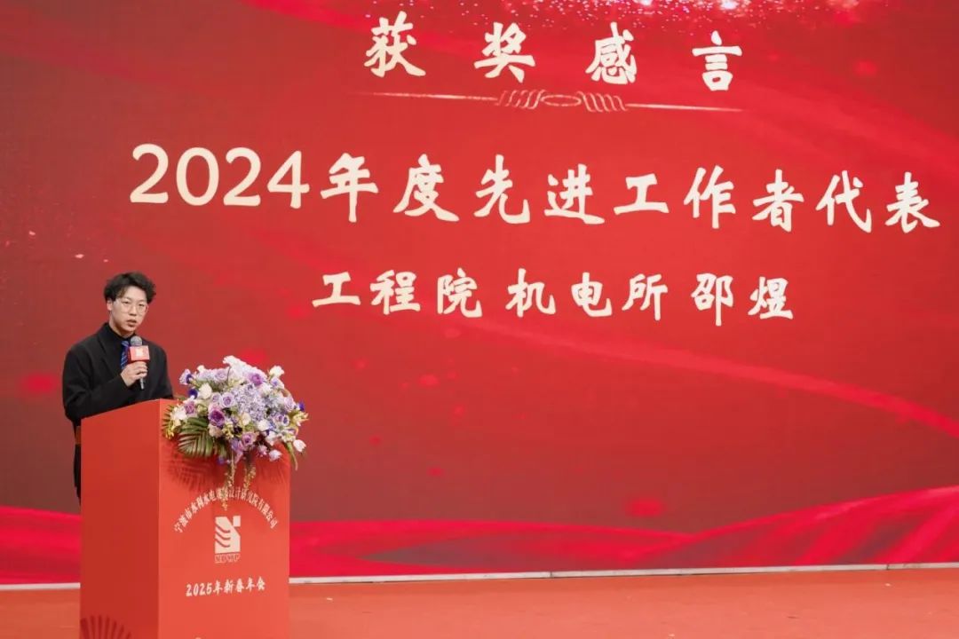 我院董事長、院長嚴文武的致辭為晚會拉開序幕。嚴院長表示,2024年,全院團結一致,協(xié)同發(fā)力,攻堅克難,用一張優(yōu)秀的成績單為我院新征程吹響了號角;2025年,我院新大樓的落成,這是我院發(fā)展的新的里程碑,也是邁向新征程的起點,希望所有員工共享新家園,愛護新家園,繼續(xù)傳承和發(fā)揚寧波院人堅持不懈的優(yōu)良傳統(tǒng),再創(chuàng)佳績!最后,嚴院長對所有員工的辛勤付出表示感謝,致以祝福,祝愿寧波院在2025年乘風破浪,再創(chuàng)輝煌!