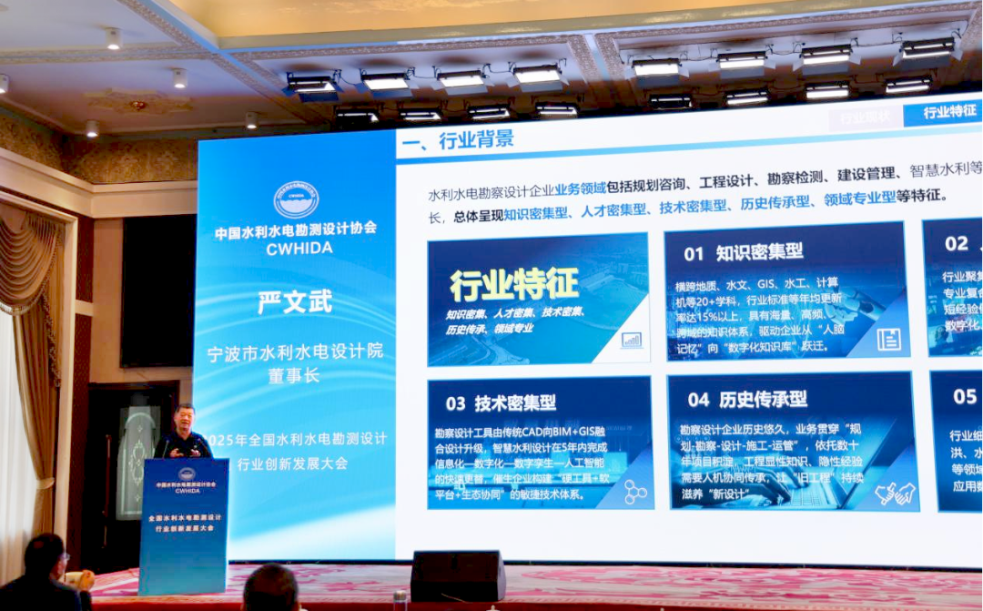 我院董事長、院長嚴(yán)文武在大會上作了《大模型賦能水利水電勘察設(shè)計(jì)企業(yè)數(shù)字化轉(zhuǎn)型》專題報告,系統(tǒng)分享了我院在人工智能大模型技術(shù)驅(qū)動下,推進(jìn)企業(yè)數(shù)字化轉(zhuǎn)型的實(shí)踐路徑與成果經(jīng)驗(yàn)。