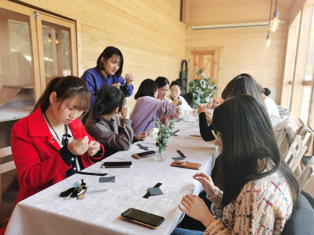本次三八活動特設(shè)皮革制作課程,大家動手制作專屬自己的節(jié)日禮物,從反復(fù)打磨到巧手縫制,專業(yè)老師熱情普及皮革制作工藝,耐心傳授縫合技巧手法,各色精巧的鑰匙扣在慧心巧手間誕生,深受喜愛。