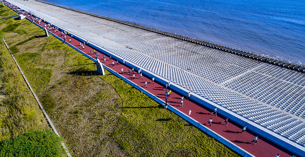 海塘安瀾是沿海地區(qū)抵御臺(tái)風(fēng)的重要屏障。象山縣爵溪街道東塘海塘維修加固工程為爵溪街道防潮海塘,主要任務(wù)為保護(hù)爵溪街道的工業(yè)企業(yè)和城鎮(zhèn)居民的防潮安全。工程主要建設(shè)內(nèi)容包括海堤加固長(zhǎng)約1090米,包括排澇閘1座,主要對(duì)海堤的堤頂、堤坡、坡面、鎮(zhèn)壓層坡面、鎮(zhèn)壓層護(hù)腳和背海坡進(jìn)行全面處理。堤頂采用了彩色瀝青鋪裝,內(nèi)坡全面景觀綠化、亮化,提升美化了環(huán)境,已成為網(wǎng)紅打卡海堤。
