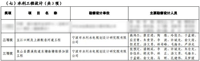 近日,2023年度寧波市優(yōu)秀勘察設(shè)計(jì)獎(jiǎng)評(píng)選結(jié)果出爐,我院設(shè)計(jì)的五江口閘及上游配套河道工程和象山縣爵溪街道東塘海塘維修加固工程分別榮獲水利工程設(shè)計(jì)組二等獎(jiǎng)和三等獎(jiǎng)!
