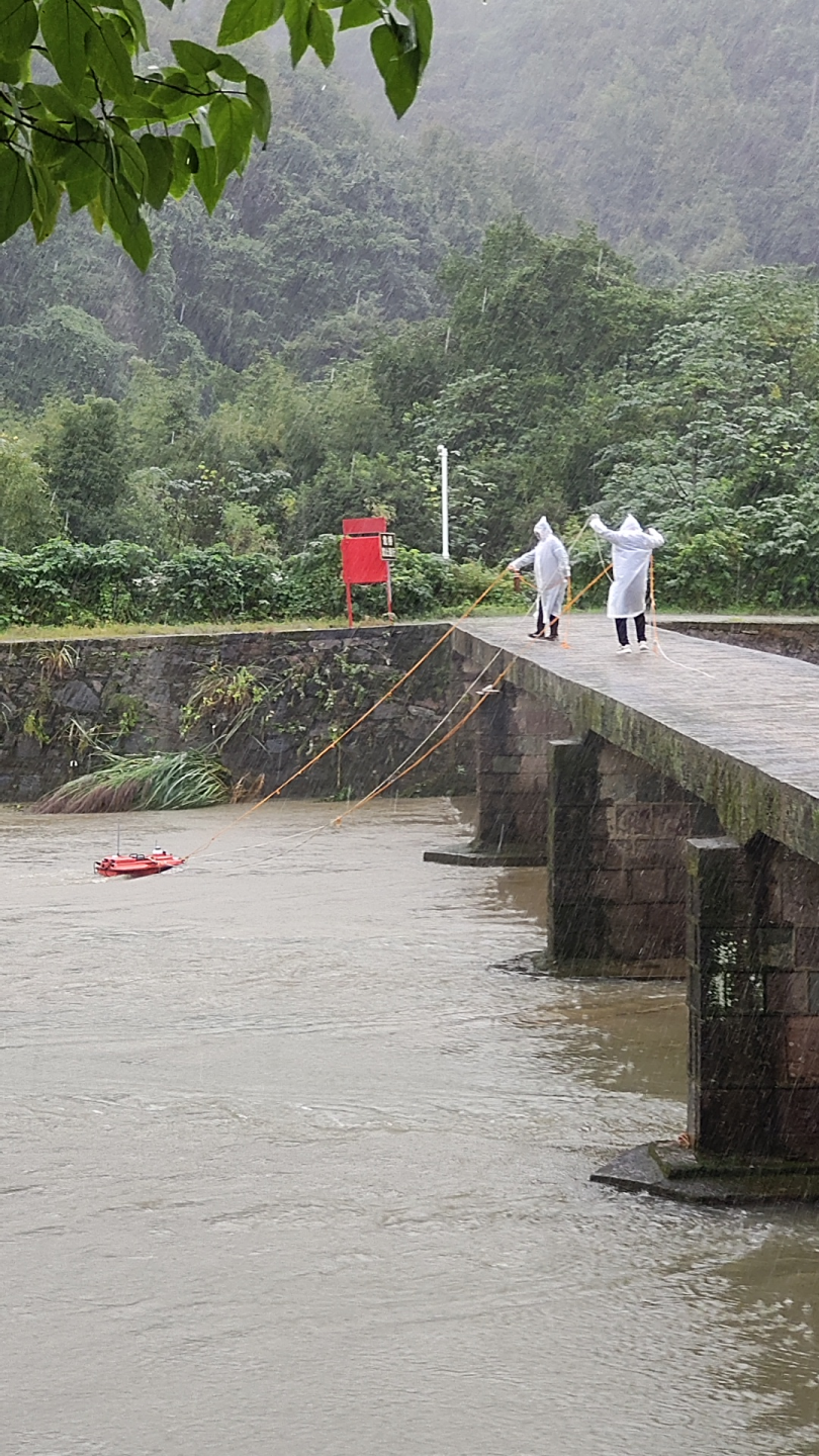 在鐘家潭進(jìn)行水文勘察與測流率定工作