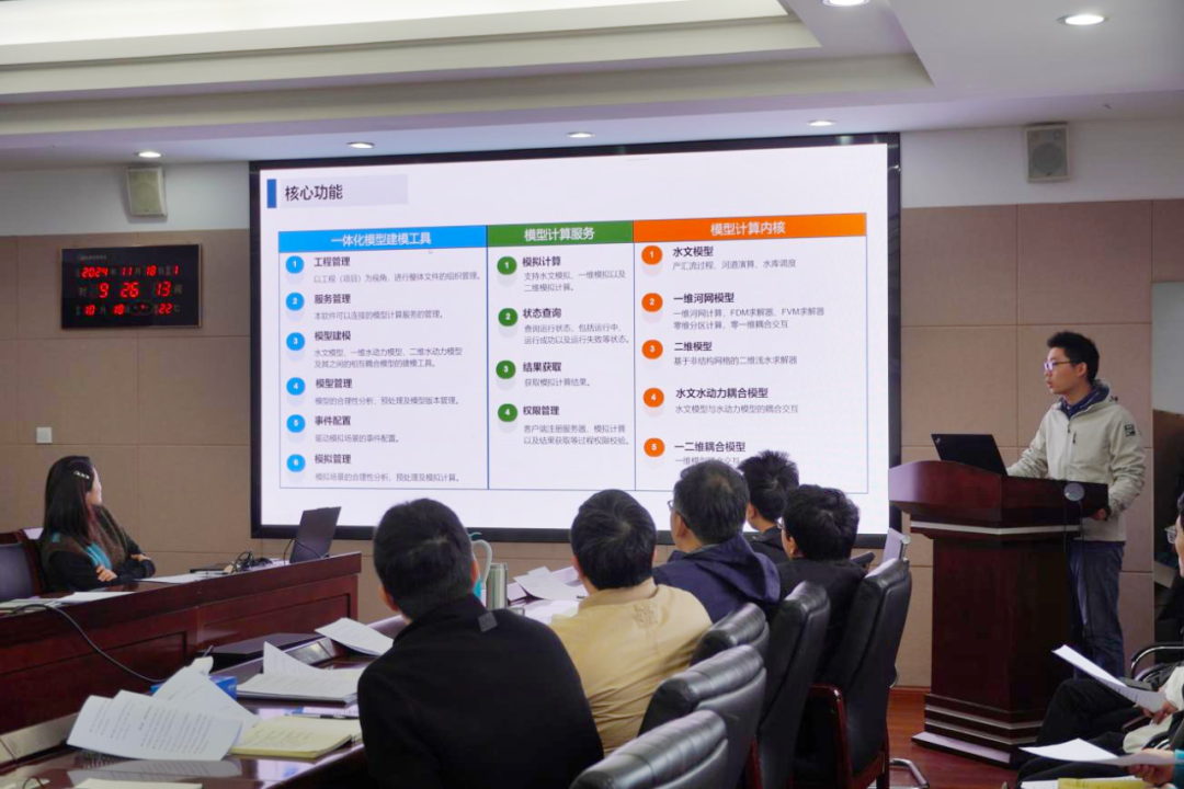 介紹結(jié)束后,參會(huì)人員針對(duì)該平臺(tái)的核心功能和實(shí)操應(yīng)用進(jìn)行熱烈交流。大家一致認(rèn)為,該平臺(tái)是目前我院自主研發(fā)的通用化、模塊化、精細(xì)化的水文水動(dòng)力數(shù)學(xué)模型及配套分析工具的集大成者,能夠?qū)崿F(xiàn)對(duì)流域水情的實(shí)時(shí)模擬和精準(zhǔn)預(yù)測(cè),能夠?yàn)榉篮檎{(diào)度、水資源管理等水利治理管理工作提供兼具前瞻性、科學(xué)性、精準(zhǔn)性、安全性的決策支撐。